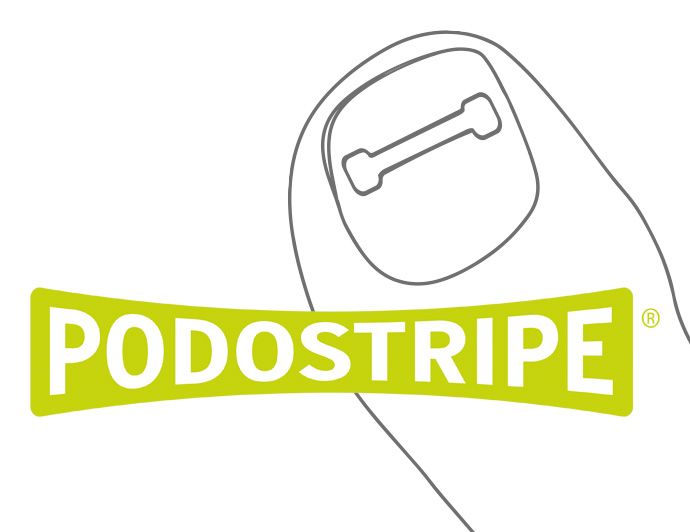 Die flache und kaum sichtbare PODOSTRIPE Klebespange bringt den Nagel mit Leichtigkeit in Form.