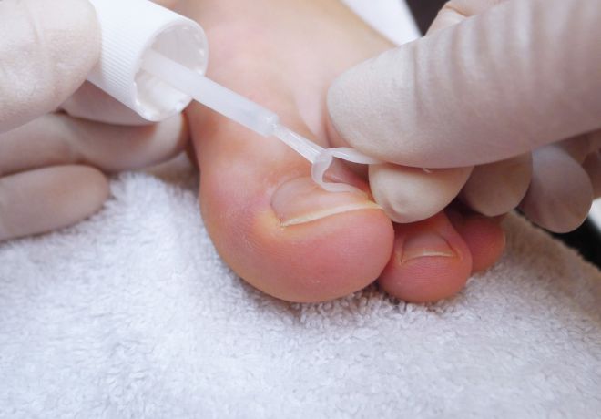 Da das Material der PODOSTRIPE weich ist, lässt sich die Schiene auch bei gerollten Nägeln problemlos anbringen. Kanten und stark gekrümmte Nägel sind kein Hindernis mehr für die Klebetechnik.