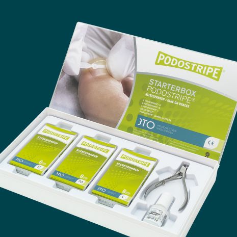 With this glue-on brace all patients - including risk patients and children - with ingrown, convoluted and deformed nails can be helped quickly and without problems. It provides immediate pain relief and a lasting treatment success. And application is as easy as taping on a plaster.